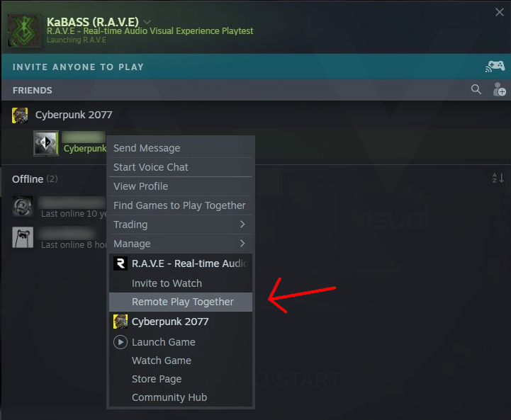 1. Start R.A.V.E and open the Steam Overlay (SHIFT + TAB).2. Select the "Friends" tab at the bottom.
