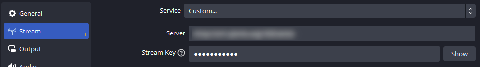 2. Go to "Stream" and type in your stream information. You may need to use "Custom...".